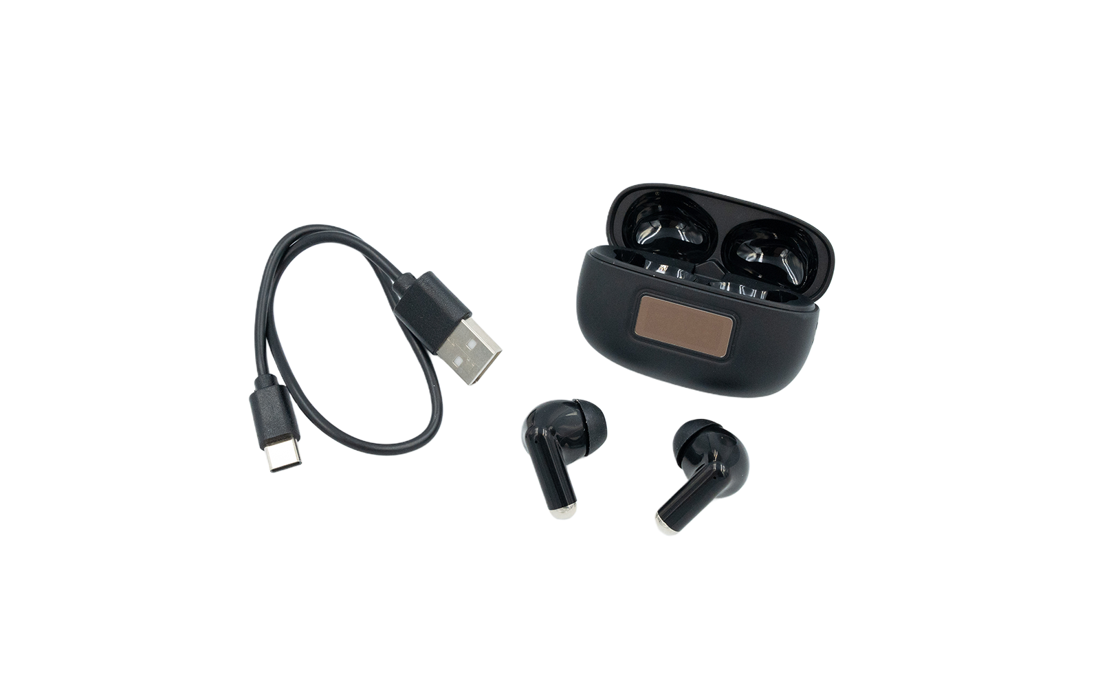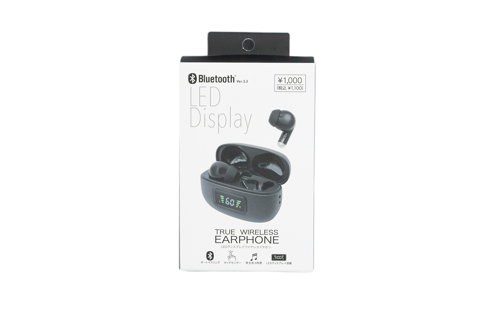 完全ワイヤレスイヤホン LEDディスプレイ 黒