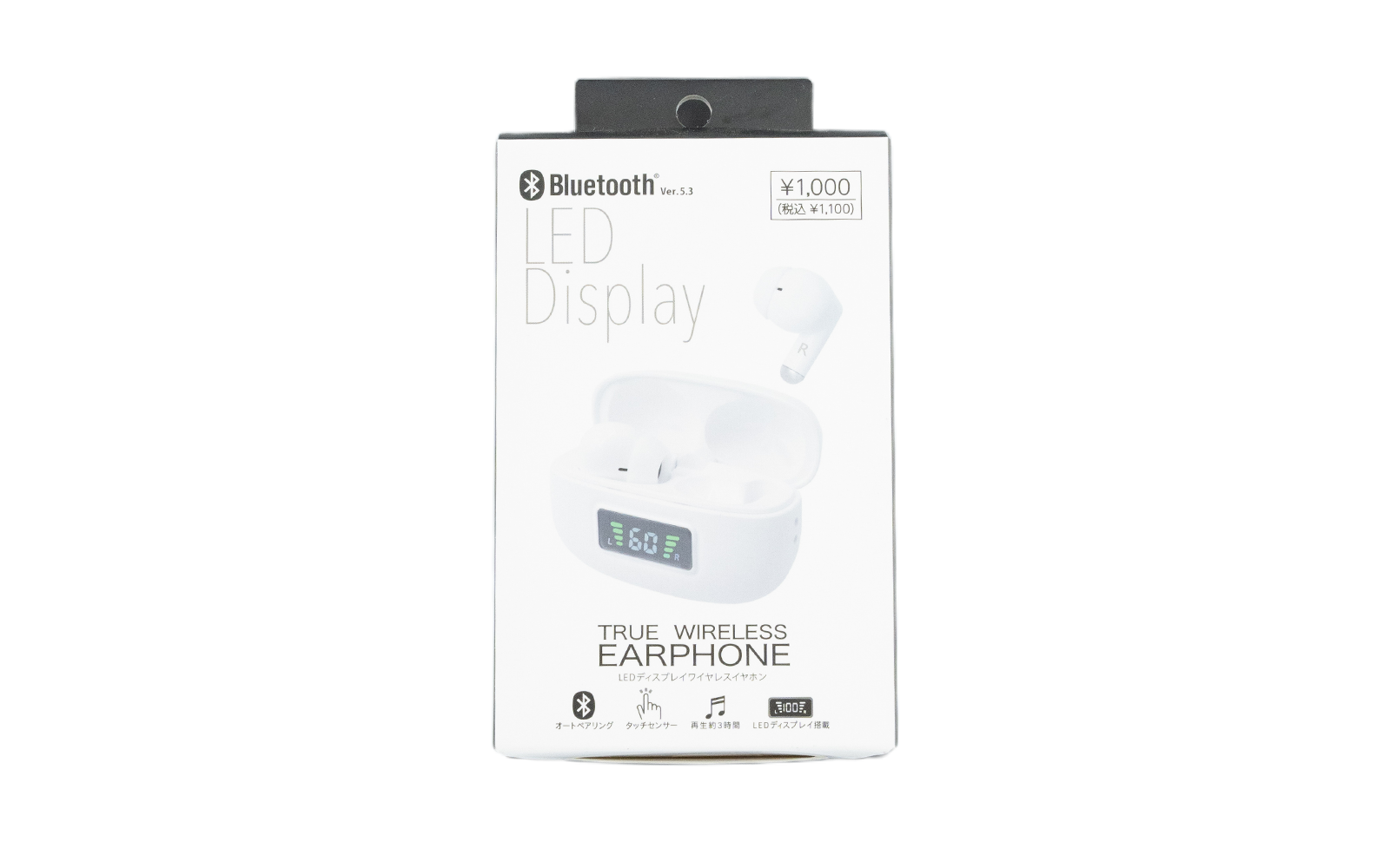 完全ワイヤレスイヤホン LEDディスプレイ 白